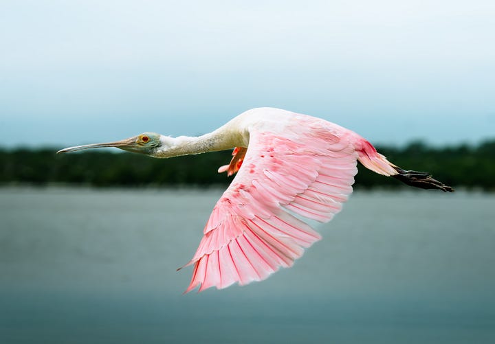 The bay gave us front-row seats to roseate spoonbills wading through the shallows, brown pelicans diving hard into the water, and osprey hauling unfortunate fish back to the mainland. Every paddle stroke revealed something worth documenting. This is what November looks like when you’re filming a documentary: early mornings, sore shoulders, and moments that make you forget how tired you are.